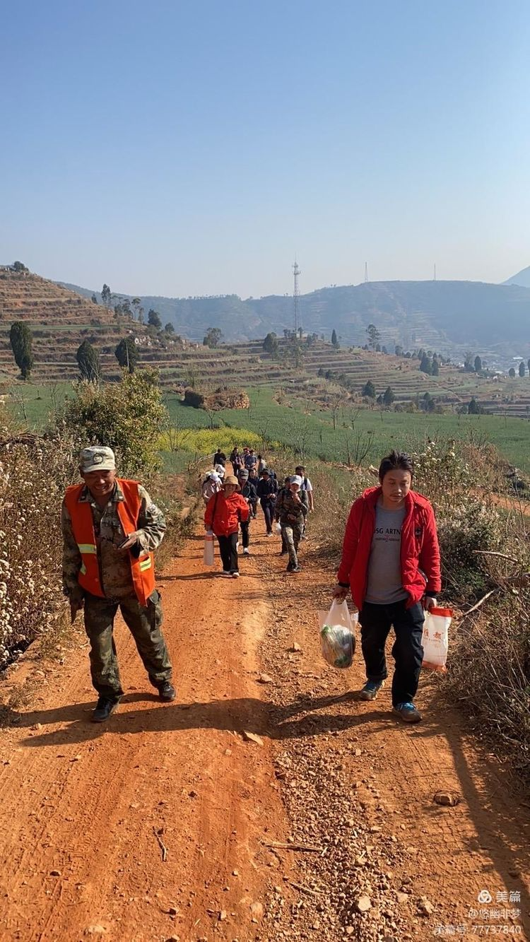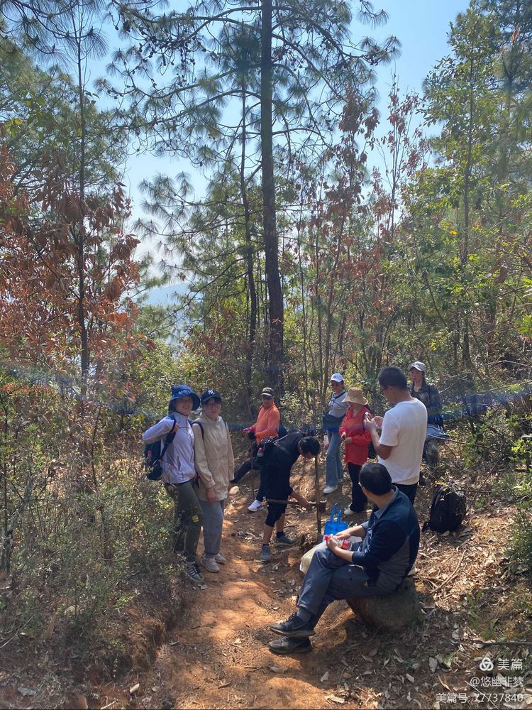 途中休息!即便路途崎嶇,一路陡坡,大家也毫不氣餒,勇往直前!路途中,大家互幫互助,男職工們充分發揮了男子漢精神,重物都往身上扛,讓女職工輕裝上陣……